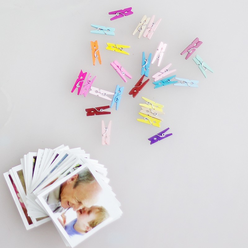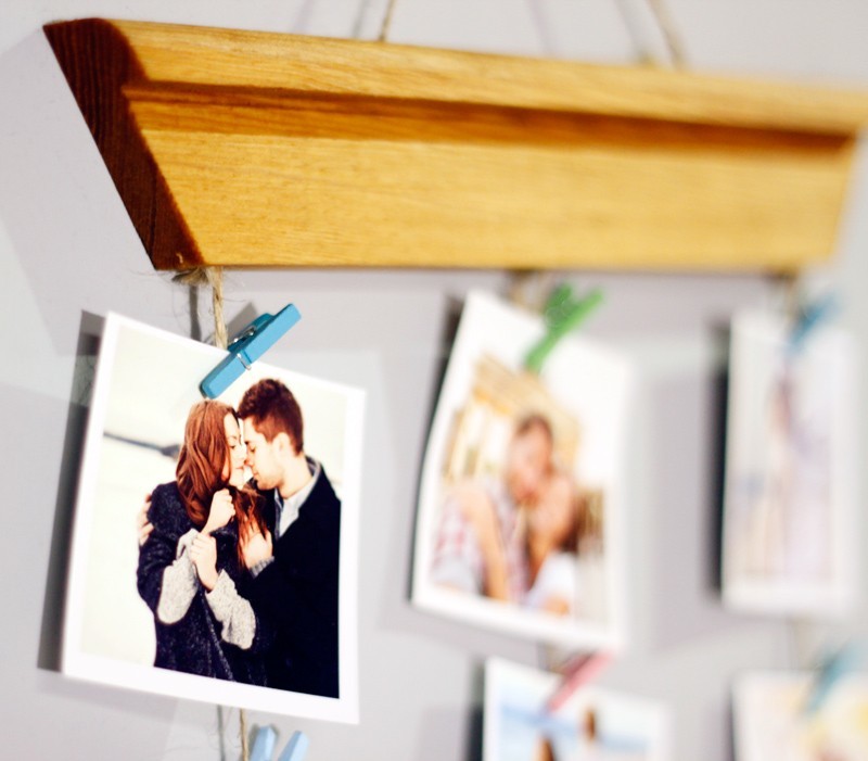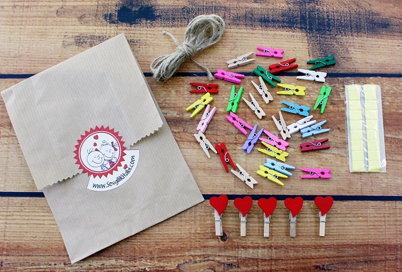 Dekoratif hediyelik ipli fotoğraf çerçevesi, foto kart baskısı ve mini mandal set.